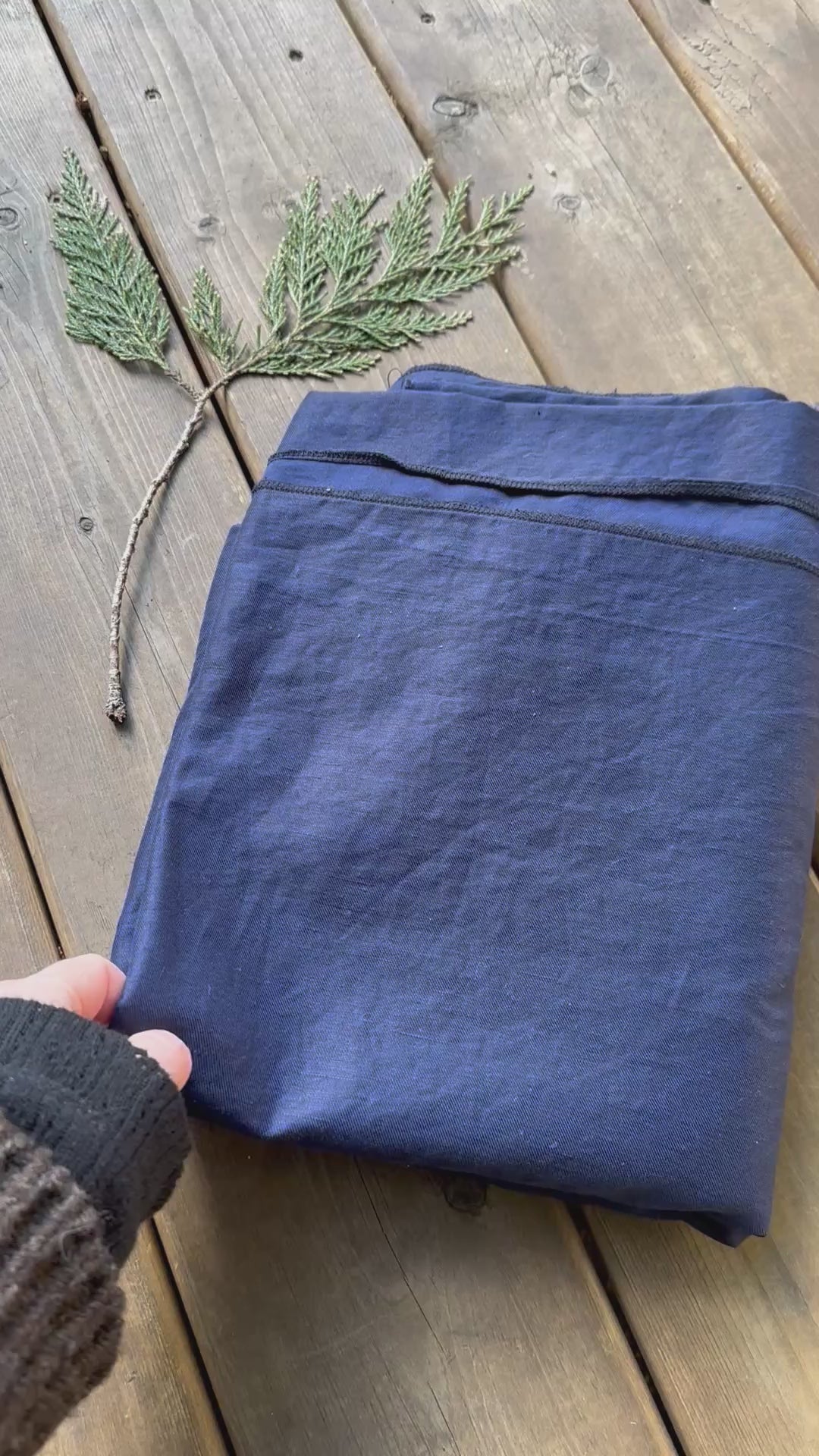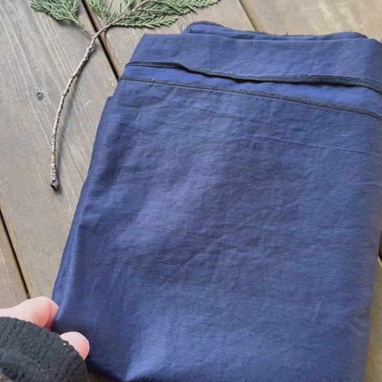 Crafted from deadstock 50% linen 50% cotton mid navy toned textile 200 gsm midweight fabric.