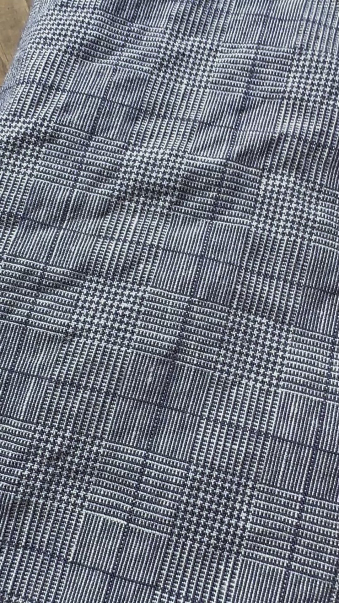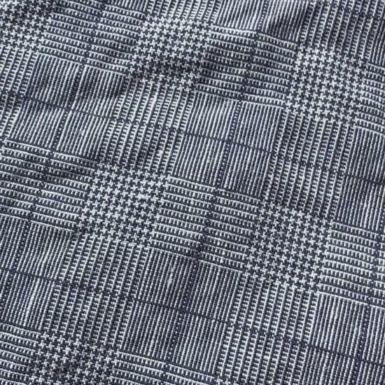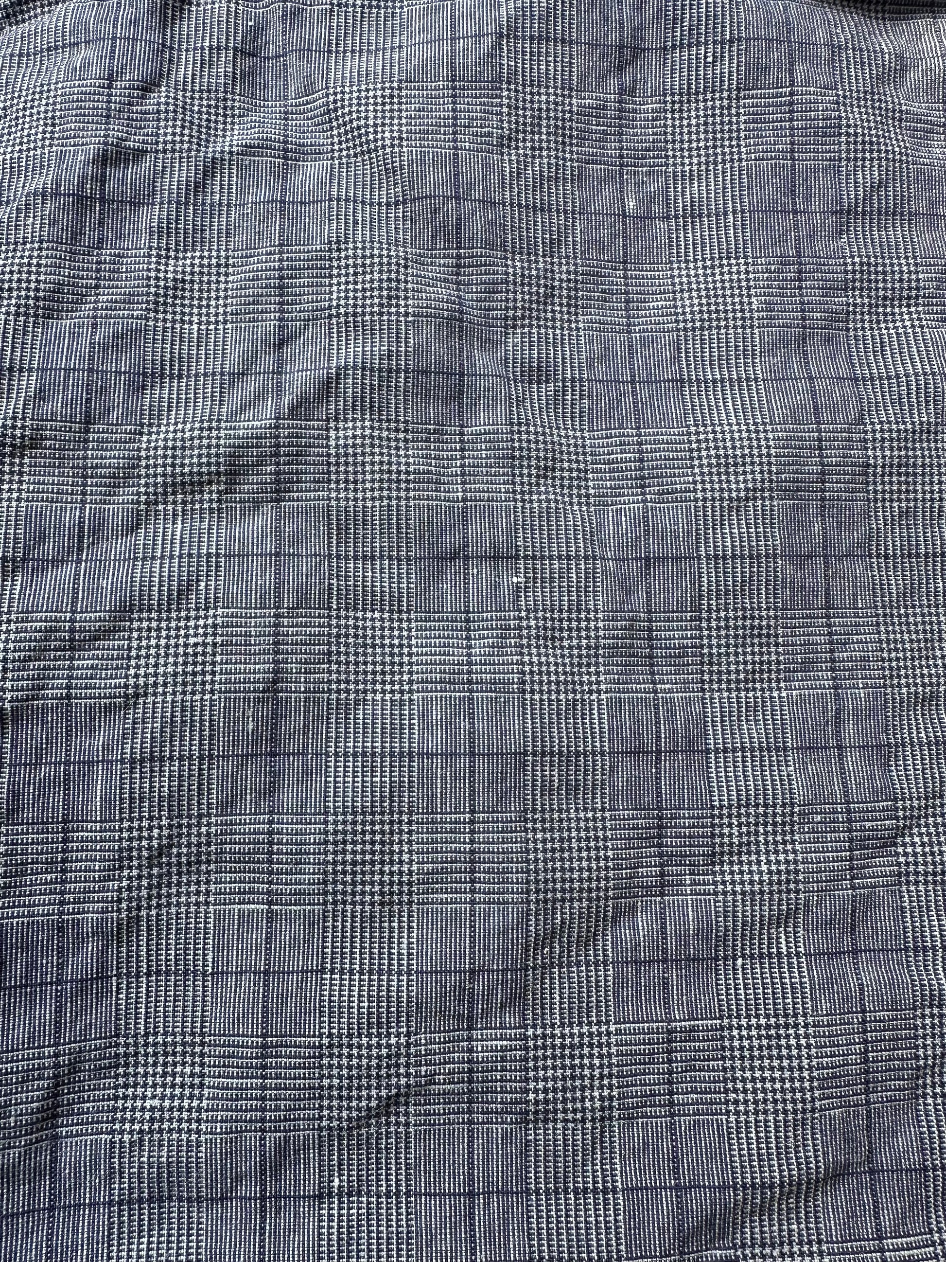 Crafted from deadstock 50% linen 50% cotton mid blue plaid toned textile 195 gsm midweight fabric.