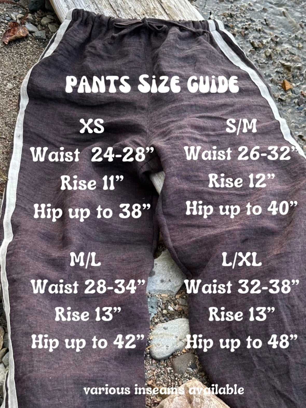 Side seam pockets with 3/4” elastic waistband and drawstring.